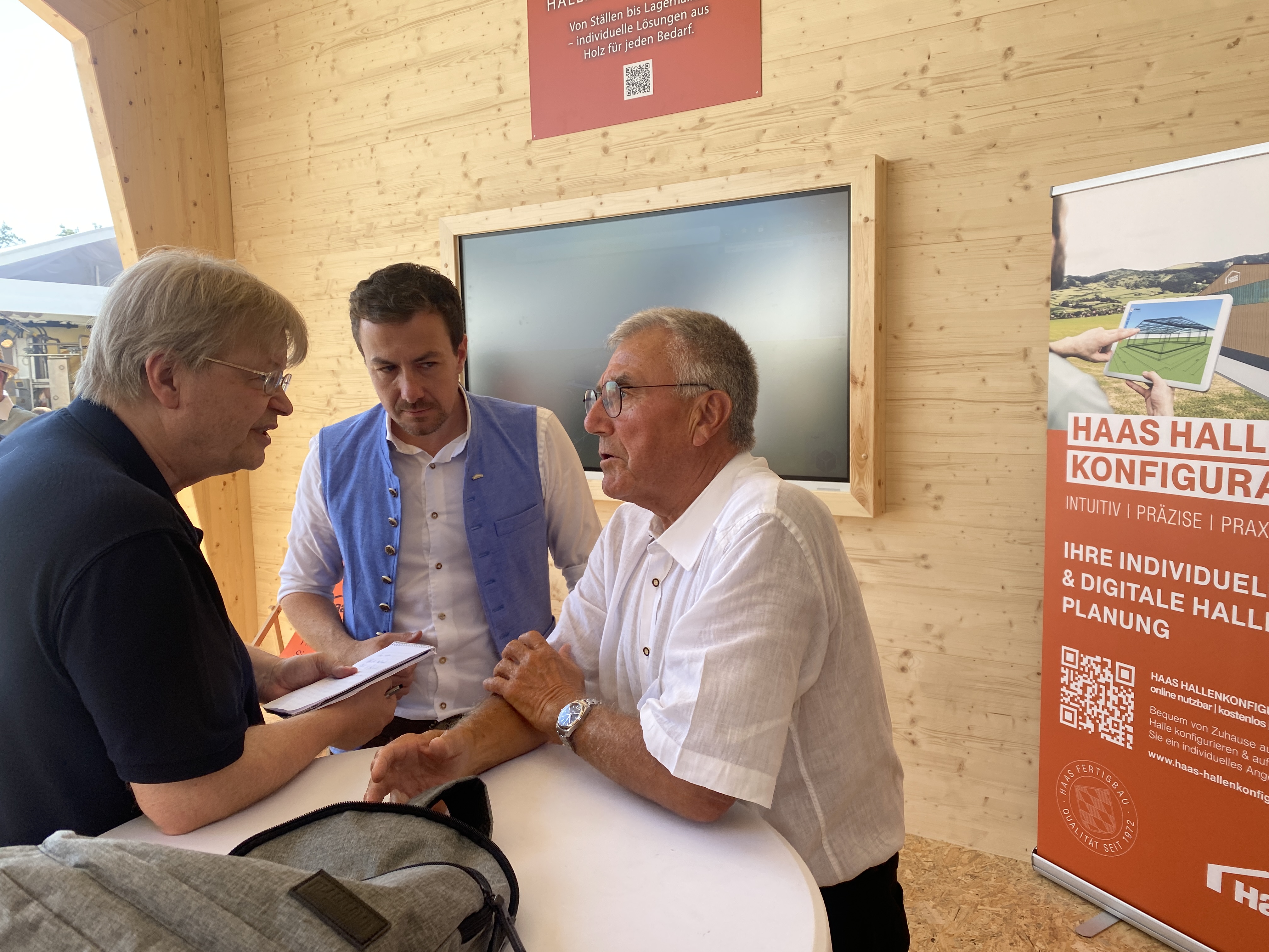Ein weiterer Schwerpunkt des Messeauftritts war die Präsentation der Komplettlösungen für Ober- und Unterbau, die Haas Fertigbau GmbH für landwirtschaftliche, gewerbliche und private Bauprojekte bietet. Von der Planung über die Errichtung des Fundaments bis hin zur Dachkonstruktion: Das Unternehmen bietet alles aus einer Hand. „Wir übernehmen den gesamten Bauprozess – von der Fundamentlegung bis zum Dach – und sorgen dafür, dass unsere Kunden von Anfang an eine stressfreie, effiziente Lösung erhalten“, betonte Benedikt Bachmeier, Abteilungsleitung Landwirtschaft bei Haas. „Dieses umfassende Paket spart nicht nur Zeit und Geld für unsere Kundinnen und Kunden, sondern gewährleistet auch eine durchgängige Qualität vom Unter- bis zum Oberbau.“