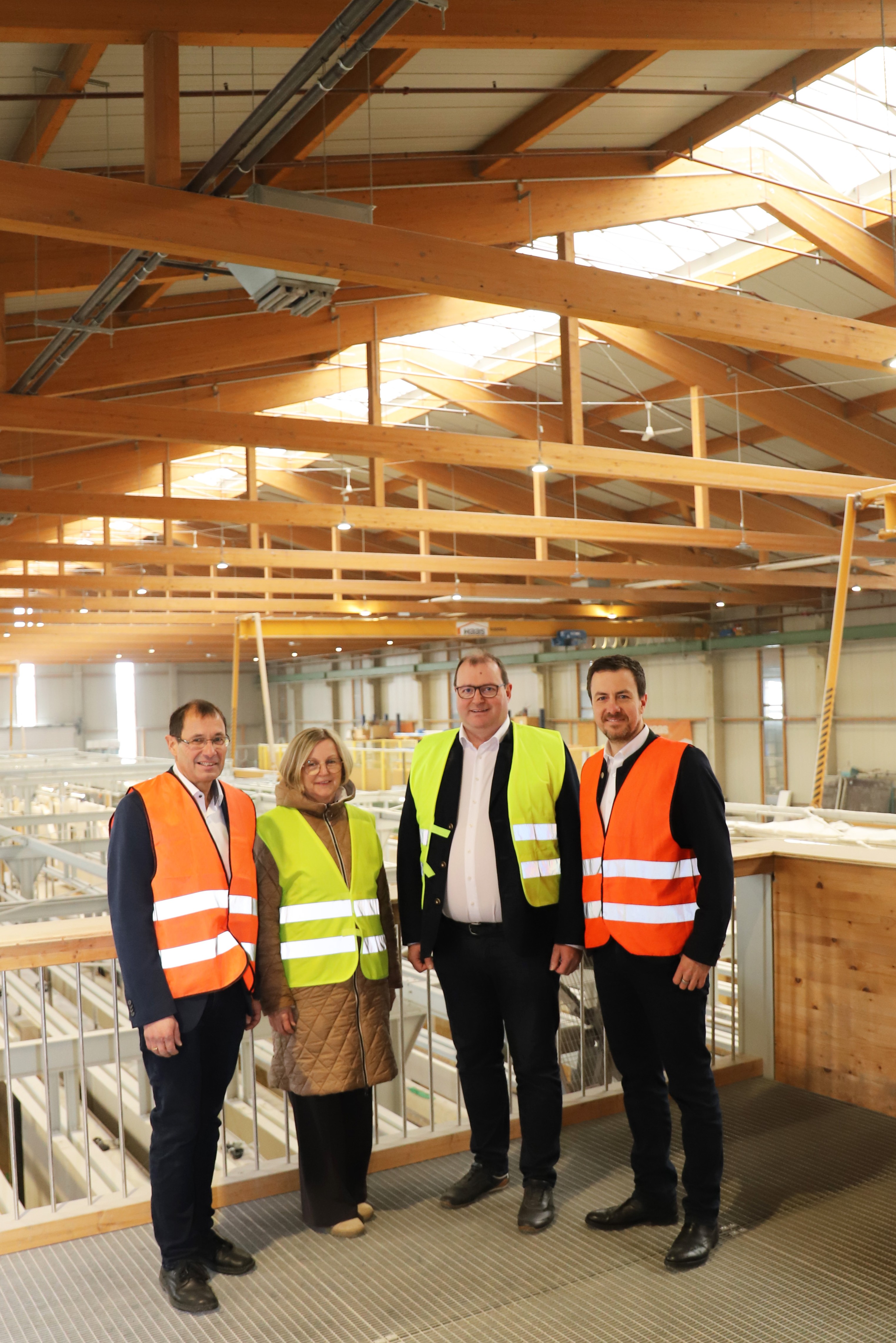 BU 2: Beim Unternehmensbesuch gaben Xaver A. Haas (r.) und Thomas Wagner (l.) von der Haas-Geschäftsführung Landrat Michael Fahmüller (2.v.r.) und Bürgermeisterin Anna Nagl (2.v.l.) interessante Einblicke in die Wandelemente-Fertigung. © Landkreis Rottal-Inn, 2026